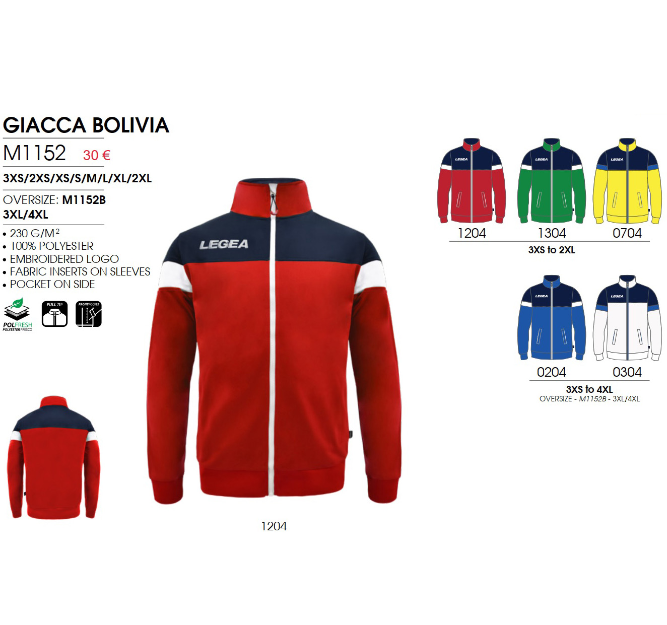 Φόρμα της Legea απο 100% πολυεστέρα η οποία διαθέτει ζακέτα με κεντημένο λογότυπο της εταιρίας με τσέπες στο πλάι και παντελόνι με λάστιχο στο κάτω μέρος.